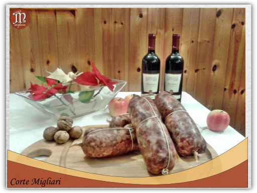 > Insaccato di carni macinate senza conservanti aggiunto con stagionatura di circa 40 giorni.