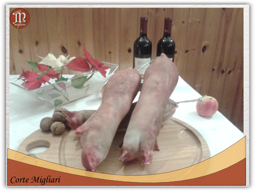 > Insaccato direttamente nella cotenna della zampa del suino. Impasto di carni magre e cotenna.